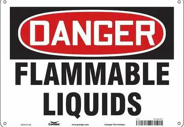 Danger Sign, Horizontal Rectangle, Number of Printed Sides 1, English, Sign Format Traditional OSHA, Sign Legend Flammable Liquids, Sign Legend Background Color White, Sign Legend Style Text
