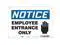 California Proposition 65: This product contains a chemical known to the State of California to cause birth defects or other reproductive harm. Safety Sign, Vertical Rectangle, Number of Printed Sides 1, English, Sign Format Traditional OSHA, Sign Legend Employee Entrance Only, Sign Legend Background Color White, Sign Legend Style Symbol and Text