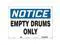 Safety Sign, Horizontal Rectangle, Number of Printed Sides 1, English, Sign Format Traditional OSHA, Sign Legend Empty Drums Only, Sign Legend Background Color White, Sign Legend Style Text