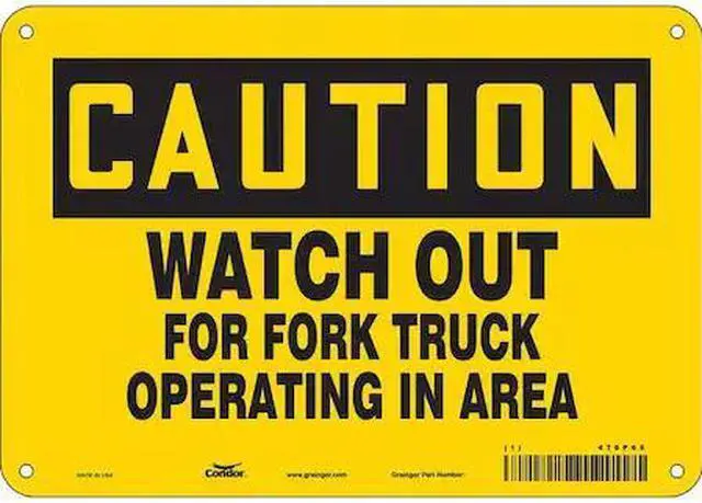 California Proposition 65: This product contains a chemical known to the State of California to cause birth defects or other reproductive harm. Safety Sign, Vertical Rectangle, Number of Printed Sides 1, English, Sign Format Traditional OSHA, Sign Legend Watch Out For Fork Truck Operating In Area, Sign Legend Background Color Yellow, Sign Legend Style Text