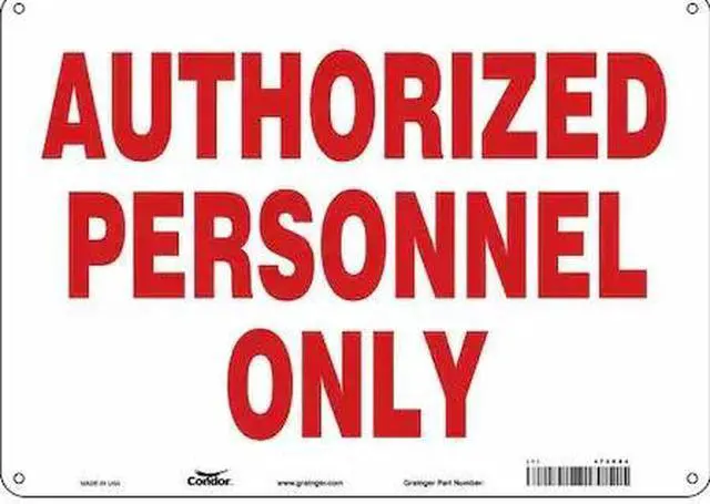 Safety Sign, Horizontal Rectangle, Number of Printed Sides 1, English, Sign Format Other Format, Sign Legend Authorized Personnel Only, Sign Legend Background Color White, Sign Legend Style Text