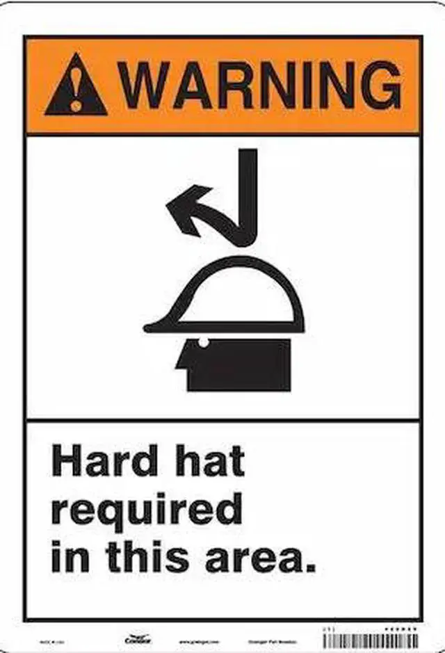 Safety Sign, Vertical Rectangle, Number of Printed Sides 1, English, Sign Format ANSI/OSHA Format, Sign Legend Hard Hat Required In This Area., Sign Legend Background Color White, Sign Legend Style Symbol and Text