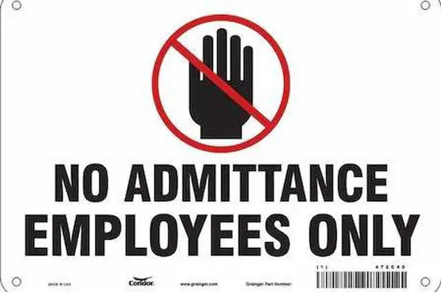 California Proposition 65: This product contains a chemical known to the State of California to cause birth defects or other reproductive harm. Safety Sign, Vertical Rectangle, Number of Printed Sides 1, English, Sign Format Other Format, Sign Legend No Admittance Employees Only, Sign Legend Background Color White, Sign Legend Style Symbol and Text