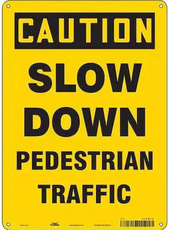 Safety Sign, Vertical Rectangle, Number of Printed Sides 1, English, Sign Format Traditional OSHA, Sign Legend Slow Down Pedestrian Traffic, Sign Legend Background Color Yellow, Sign Legend Style Text