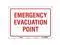 Safety Sign, Horizontal Rectangle, Number of Printed Sides 1, English, Sign Legend Emergency Evacuation Point, Sign Legend Background Color White, Sign Legend Style Text