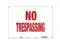 Safety Sign, Horizontal Rectangle, Number of Printed Sides 1, English, Sign Format Other Format, Sign Legend No Trespassing, Sign Legend Background Color White, Sign Legend Style Text