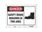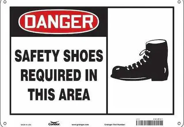 Safety Sign, Horizontal Rectangle, Number of Printed Sides 1, English, Sign Format Traditional OSHA, Sign Legend Safety Shoes Required In This Area, Sign Legend Background Color White, Sign Legend Style Symbol and Text