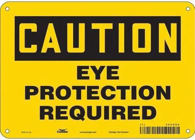 California Proposition 65: This product contains a chemical known to the State of California to cause birth defects or other reproductive harm. Safety Sign, Vertical Rectangle, Number of Printed Sides 1, English, Sign Format Traditional OSHA, Sign Legend Eye Protection Required, Sign Legend Background Color Yellow, Sign Legend Style Text