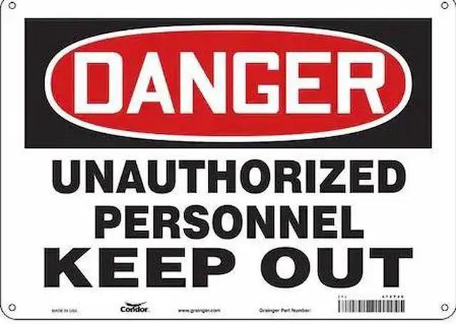 Safety Sign, Horizontal Rectangle, Number of Printed Sides 1, English, Sign Format Traditional OSHA, Sign Legend Unauthorized Personnel Keep Out, Sign Legend Background Color White, Sign Legend Style Text