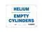 California Proposition 65: This product contains a chemical known to the State of California to cause birth defects or other reproductive harm. Safety Sign, Vertical Rectangle, Number of Printed Sides 1, English, Sign Format Other Format, Sign Legend Helium Empty Cylinders, Sign Legend Background Color White, Sign Legend Style Text