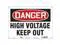 Safety Sign, Horizontal Rectangle, Number of Printed Sides 1, English, Sign Format Traditional OSHA, Sign Legend High Voltage Keep Out, Sign Legend Background Color White, Sign Legend Style Text