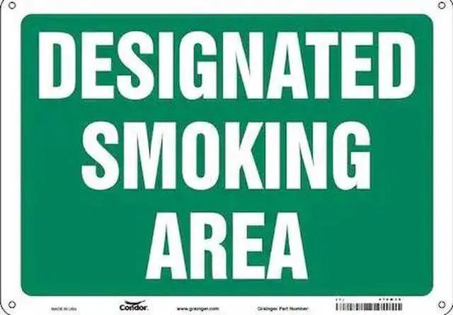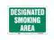 Safety Sign, Horizontal Rectangle, Number of Printed Sides 1, English, Sign Format Other Format, Sign Legend Designated Smoking Area, Sign Legend Background Color Green, Sign Legend Style Text