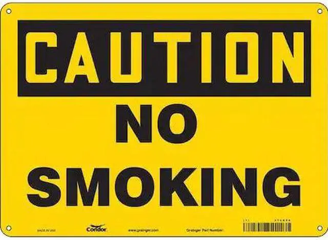 Safety Sign, Horizontal Rectangle, Number of Printed Sides 1, English, Sign Format Traditional OSHA, Sign Legend No Smoking, Sign Legend Background Color Yellow, Sign Legend Style Text