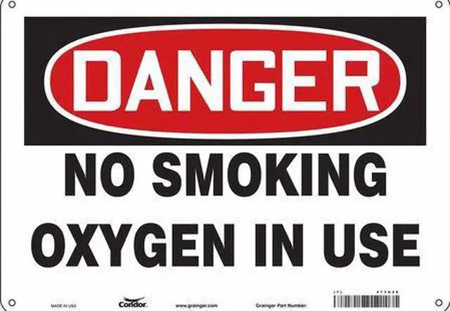 No Smoking Sign, Horizontal Rectangle, Number of Printed Sides 1, English, Sign Format Traditional OSHA, Sign Legend No Smoking Oxygen In Use, Sign Legend Background Color White, Sign Legend Style Text