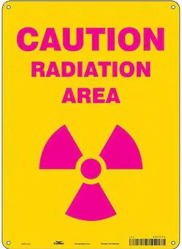 Radiation Safety Sign, Vertical Rectangle, Number of Printed Sides 1, English, Sign Format Other Format, Sign Legend Caution Radiation Area, Sign Legend Background Color Yellow, Sign Legend Style Symbol and Text