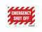 California Proposition 65: This product contains a chemical known to the State of California to cause birth defects or other reproductive harm. SAFETY SIGN FIRE AND EMERGENCY, Vertical Rectangle, Number of Printed Sides 1, English, Sign Legend Emergency Shut Off, Sign Legend Background Color Red, White, Sign Legend Style Text