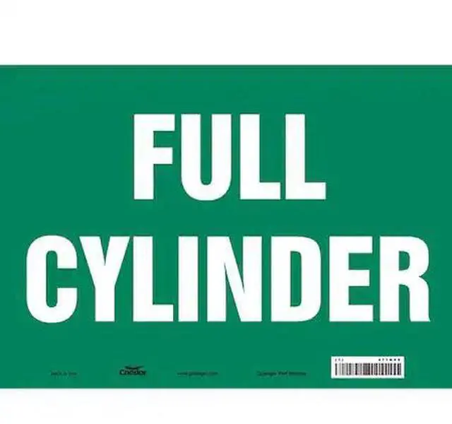 Safety Sign, Horizontal Rectangle, Number of Printed Sides 1, English, Sign Format Other Format, Sign Legend Full Cylinder, Sign Legend Background Color Green, Sign Legend Style Text