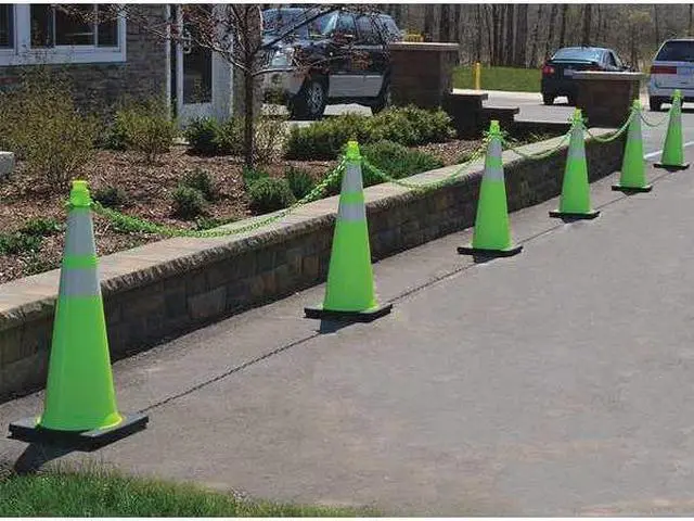 Traffic Cone Kit for Plastic Chain Barrier, Product Type Traffic Cones, Cone Height 36 in, Cone Color Green, Includes (6) Cone Chain Connectors (Cs), (6) Reflective Traffic Cones, 50 feet of 2 Inch Plastic Barrier Chain. This item has been restricted from sale in the following state (s): []