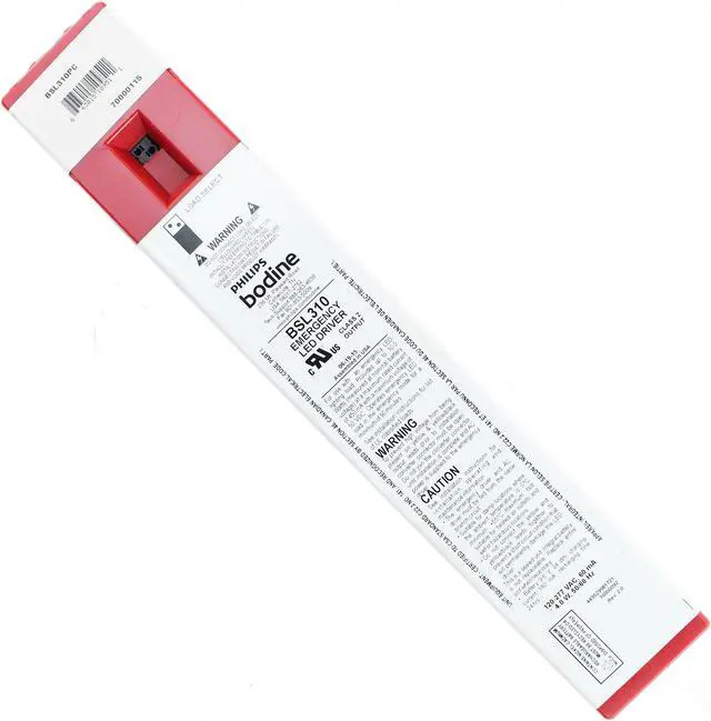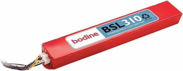 Bodine, LED Emergency Driver, LED Bulb Type, Input Voltage 120 to 277V AC, Number of Bulbs Supported 1, Bulb Watts 10.4 W, Max. Bulb Watts 10.4 W, Initial Lumens Fixture Dependent, 90 min Emergency Illumination Time, CA Title 20 Compliant Yes, 14 1/2 in Length, 2 1/4 in Width, 1 3/16 in Height, Standard Profile, Polycarbonate Housing Material
