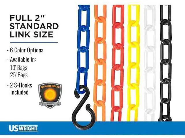 US WEIGHT U2310YEL 10 ft L Plastic Chain, 2 in Links, Yellow, SunShield