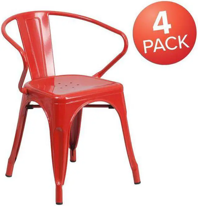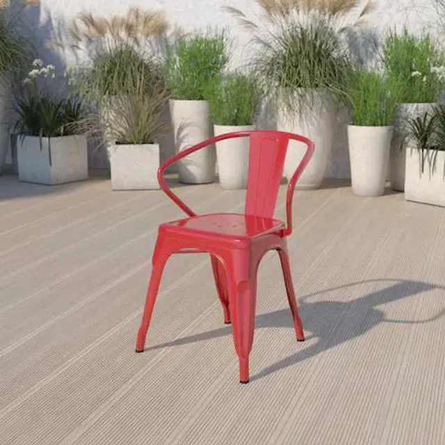 FLASH FURNITURE 4-CH-31270-RED-GG Red Metal Indoor-Outdoor Chair with Arms