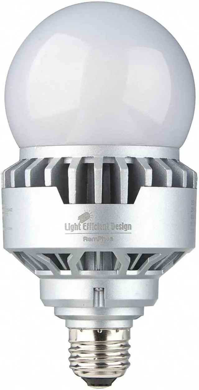 HID Replacement LED Bulb, Bulb Dia. 2 5/8 in, Bulb Shape A21, Bulb Style Not Applicable, Color Temperature 3000K, 4000K, 5000K, High Pressure Sodium Wattage Equivalency 150 W, Lumens 2, 400 lm, 2, 600 lm, 2, 700 lm, Light Technology LED, Metal Halide Wattage Equivalency 150 W, Shatter-Resistant Yes, Voltage 120 to 277V AC, Watts 20 W, Length 5 1/2 in, Bulb Base Type Medium Screw (E26), Bulb Housing Polycarbonate, Color Rendering Index 80.0, Fan Cooling Passive Cooling, For Enclosed Fixtures Yes