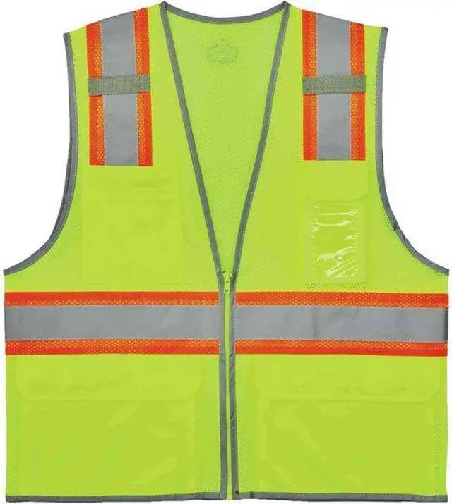 Two Tone Mesh Safety Vest, Lime S/M, ANSI Class 2, Vest Size M, S, Number of Pockets with Closure 3, Features Dual Radio Mic Tabs, ID Window, Reflective Binding Accents Outline the Wearer, Standards ANSI-Compliant. This item has been restricted from sale in the following state (s): []