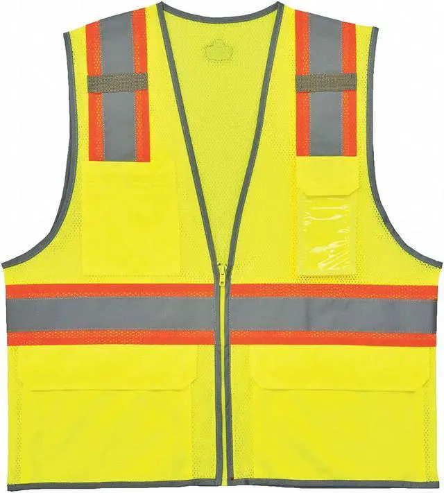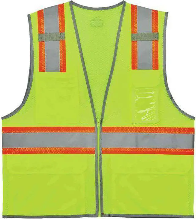 Two Tone Mesh Safety Vest, Lime, L/XL, ANSI Class 2, Vest Size L, XL, Number of Pockets with Closure 3, Features Dual Radio Mic Tabs, ID Window, Reflective Binding Accents Outline the Wearer, Standards ANSI-Compliant. This item has been restricted from sale in the following state (s): []