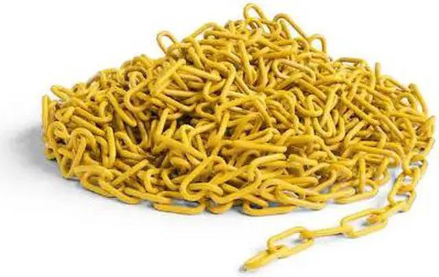 These 2 inch chains are designed with sun protection UV resistant technology for optimum durability and longevity. Available in a wide variety of colors and lengths from 20 feet to 500 feet, these versatile plastic chains can be paired with delineator posts, plastic stanchion posts, bollards, or any other post with a loop to create crowd control or visual barriers around hazardous work zones.