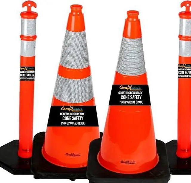 The COMFITWEAR COLFC-180-6 Orange Traffic Cone is a durable, high-visibility safety cone made from long-lasting polyvinyl chloride (PVC). Standing 18 inches tall, it features a premium 6-inch 3M reflective collar for enhanced visibility in low light or nighttime conditions. Designed for everyday use in traffic control, parking management, and work zone safety, this single cone is lightweight, stable, and ideal for both indoor and outdoor environments.