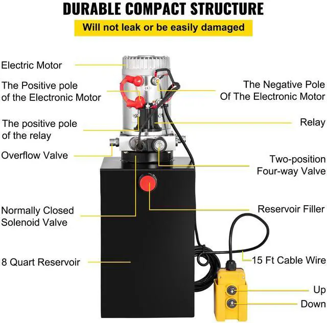 1 x 12 Volt Hydraulic Pump For Dump Trailer 15L Single Acting