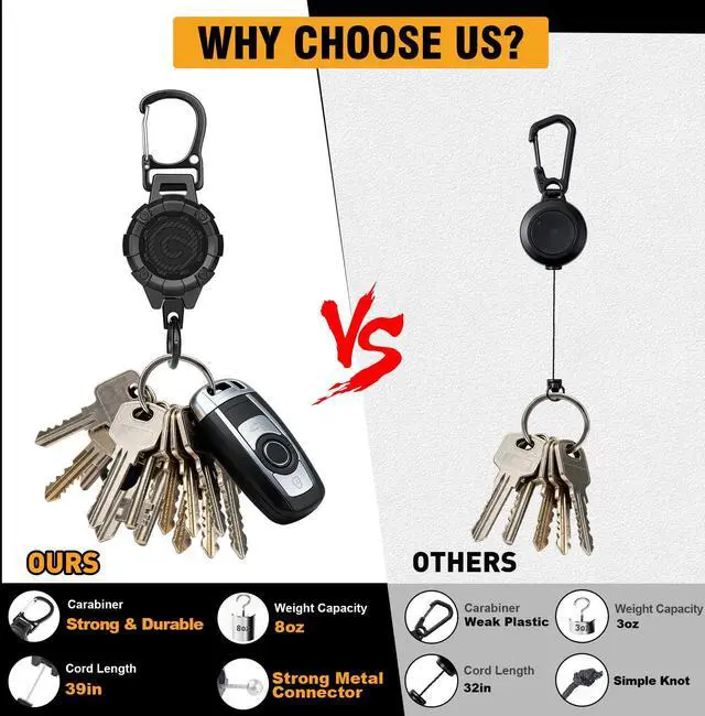Sturdy & Durable Construction: Lightweight yet tough, this retractable keychain withstands drops, impacts, and daily wear without cracking or breaking. Engineered for long-lasting performance, it delivers smooth retraction and reliable function whether you're commuting, working on-site, or out in the field.