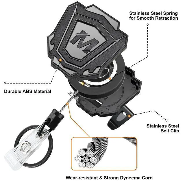 Truly Heavy-duty: Badge reel retractable features a 0.039 inch high-strength Dyneema cord with strong rebound force that can withstand 9 oz of tension without slide down all the way