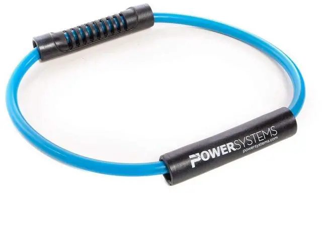 This versatile tubing band is ideal for strengthening and conditioning specific areas of the body. The double-lock system ensures the tubing doesn't come apart during exercises and is produced with a unique layering process to improve longevity in institutional or commercial fitness settings. Great for upper or lower-body workouts. The durable, soft PVC handles contour for easy gripping. Great for Pilates, rehabilitation and group classes. Five resistance levels. 10" diameter.