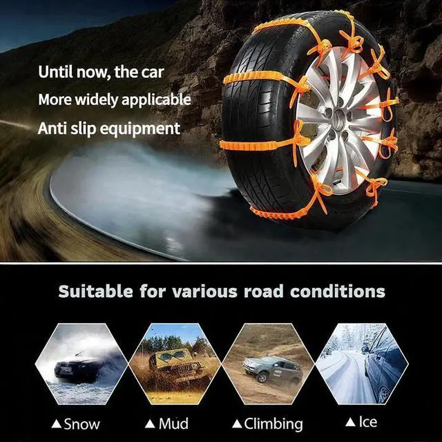 These snow chains are designed to fit most tire sizes, including cars, SUVs, trucks, and even motorcycles. Perfect for sedans, SUVs, trucks, and motorcycles. They ensure a universal fit for all your vehicles, providing reliable traction in snowy conditions.
