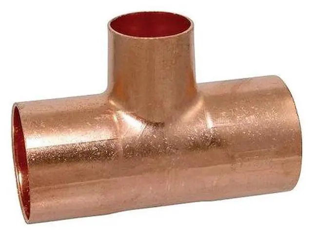 Sweat Fitting Tee, Application Potable Water, Fitting Side A Connection Type Cup, Fitting Side B Connection Type Cup, Fitting Side C Connection Type Cup, Fitting Side A Copper Tube Size 1 1/2 in, Fitting Side B Copper Tube Size 1 1/2 in, Fitting Side C Copper Tube Size 1 1/4 in, Fitting Material Wrot Copper, Fitting Side A Tube Outer Diameter 1 5/8 in, Fitting Side B Tube Outer Diameter 1 5/8 in, Fitting Side C Tube Outer Diameter 1 3/8 in, Specific Fitting Shape Reducing Tee.