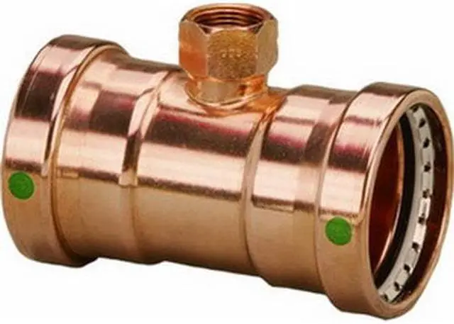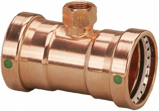 Crimp Tee Fitting, Application Potable Water, Fitting Side A Connection Type Press-Fit, Fitting Side B Connection Type Press-Fit, Fitting Side C Connection Type FNPT, Fitting Side A Copper Tube Size 3 in, Fitting Side B Copper Tube Size 3 in, Fitting Material Copper, Includes Center Stop Dimple Center Stop, Fitting Side C Pipe Size 3/4 in, O-Ring Material EPDM, Specific Fitting Shape Adapter Tee, Overall Length 6 1/32 in, Maximum Operating Pressure 200 psi. This item has been restricted from sale in the following state (s): []