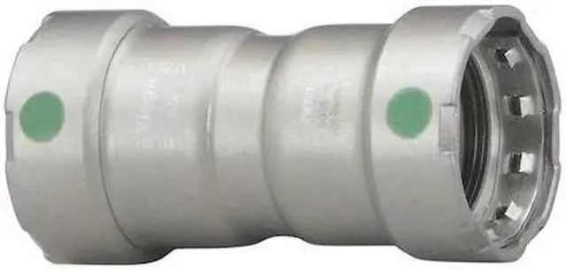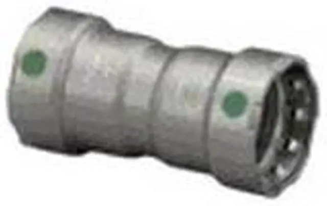 Crimp Coupling Fitting, Application Non-Potable Water, Fitting Side A Connection Type Press-Fit, Fitting Side B Connection Type Press-Fit, Fitting Material Steel, Fitting Side A Pipe Size 1 1/4 in, Fitting Side B Pipe Size 1 1/4 in, O-Ring Material EPDM, Specific Fitting Shape Straight Connector, Finish/Coating Zinc Nickel-Plated, Overall Length 4 11/32 in, Includes Center Stop Rolled Center Stop, Number of Bolt Holes Not Applicable, Flange Thickness Not Applicable. This item has been restricted from sale in the following state (s): []