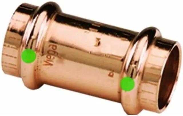 Crimp Coupling Fitting, Application Potable Water, Fitting Side A Connection Type Press-Fit, Fitting Side B Connection Type Press-Fit, Fitting Side A Copper Tube Size 1 1/4 in, Fitting Side B Copper Tube Size 1 1/4 in, Fitting Material Copper, O-Ring Material EPDM, Specific Fitting Shape Straight Coupling, Overall Length 2 7/32 in, Includes Center Stop Dimple Center Stop, Number of Bolt Holes Not Applicable, Flange Thickness Not Applicable, Maximum Operating Pressure 200 psi. This item has been restricted from sale in the following state (s): []