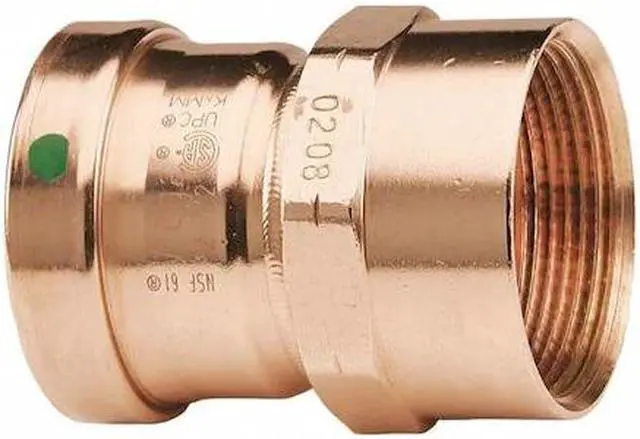 Crimp Adapter Fitting, Application Potable Water, Fitting Side A Connection Type Press-Fit, Fitting Side B Connection Type FNPT, Fitting Side A Copper Tube Size 3 in, Fitting Material Copper, Fitting Side B Pipe Size 3 in, O-Ring Material EPDM, Specific Fitting Shape Straight Adapter, Overall Length 4 13/16 in, Number of Bolt Holes Not Applicable, Flange Thickness Not Applicable, Maximum Operating Pressure 200 psi, Maximum Operating Temperature 250 Degrees F, Standards ASTM B75, ASTM B88. This item has been restricted from sale in the following state (s): []