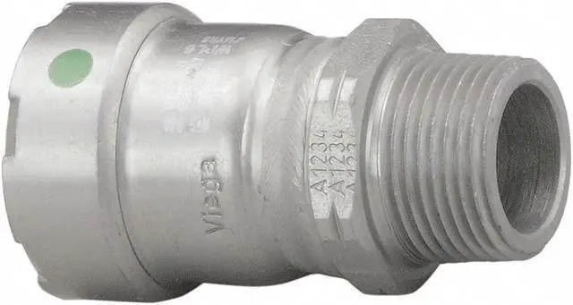 Adapter, Tube Fitting Material Carbon Steel, Fitting Connection Type Press x Male Pipe Thread, Pipe Size - Pipe Fitting 2 in x 2 in, Max. Pressure 200 psi, Temp. Range 0 Degrees to 250 Degrees F