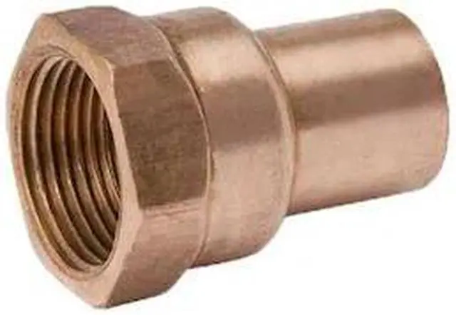 Sweat Fitting Adapter, Application Potable Water, Fitting Side A Connection Type FTG, Fitting Side B Connection Type FNPT, Fitting Side A Copper Tube Size 1 in, Fitting Material Wrot Copper, Fitting Side B Pipe Size 1 in, Fitting Side A Tube Outer Diameter 1 1/8 in, Fitting Side B Tube Outer Diameter 1 in, Maximum Operating Pressure 494 psi @ 100 Degrees F, Maximum Operating Temperature 250 Degrees F, Specific Fitting Shape Straight Adapter, Includes Center Stop No Center Stop. This item has been restricted from sale in the following state (s): []