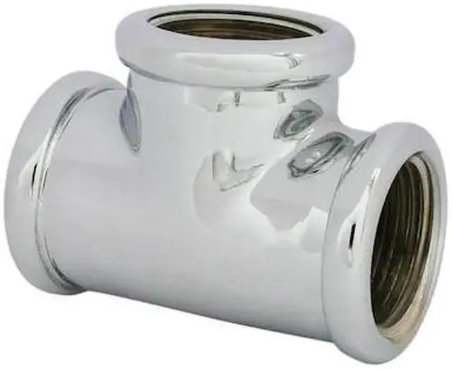California Proposition 65: This product contains a chemical known to the State of California to cause birth defects or other reproductive harm. 3/4" Chrome Plated Threaded Cast Bronze Tee, FNPT x FNPT x FNPT