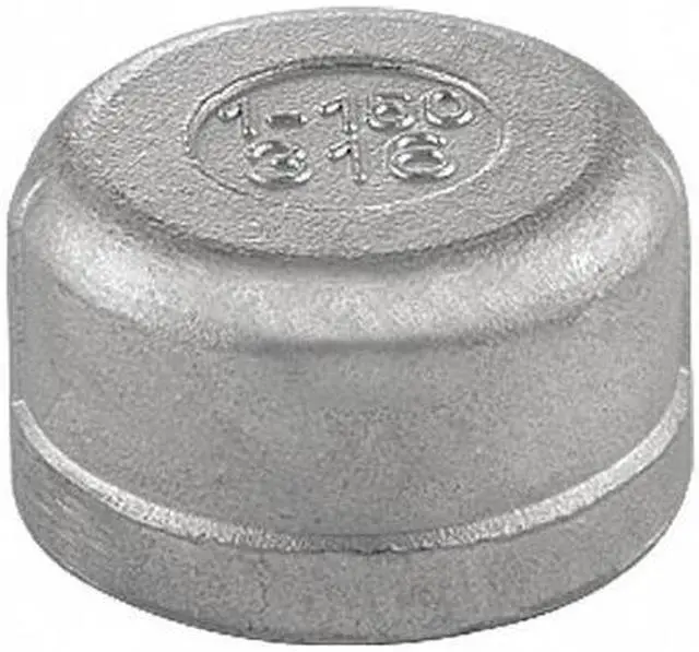 Round Cap, 1 1/2 in Nominal Pipe Size, Stainless Steel, 304, Class Class 150, For Pipe Schedule 40, Female NPT, 1 1/2 in Outside Diameter, 36 mm Overall Length, 300 psi Maximum Operating Pressure, 150 psi Max. Steam Pressure, -20 Degrees to 350 Degrees F, Includes Pre-Applied Thread Sealant No, Includes Seal No, 11 1/2, Magnetic No. This item has been restricted from sale in the following state (s): []