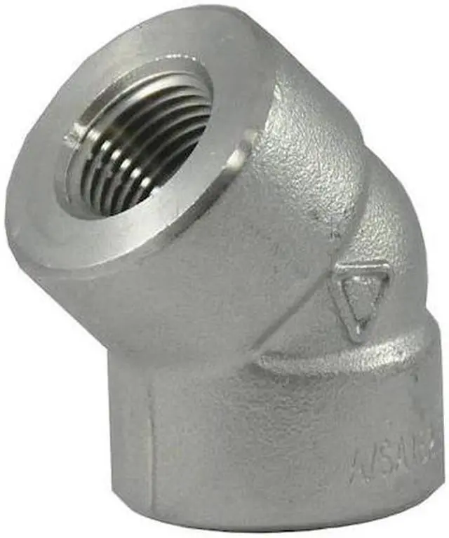 California Proposition 65: This product contains a chemical known to the State of California to cause birth defects or other reproductive harm. 45 Degrees Elbow, Stainless Steel, 304, Class Class 3000, 1 in, Female, NPT, 11 1/2, 1 in, Female, NPT, 11 1/2. This item has been restricted from sale in the following state (s): []
