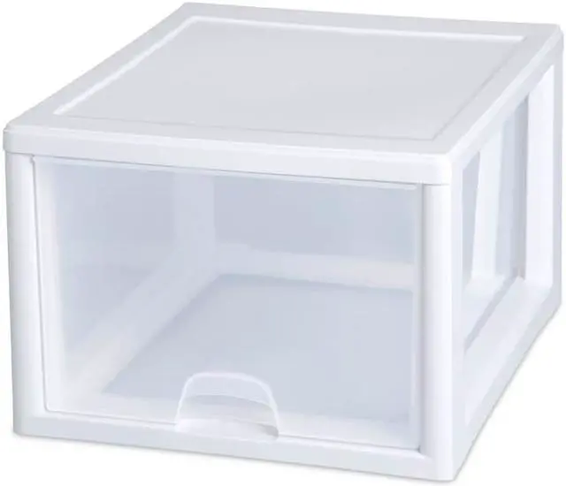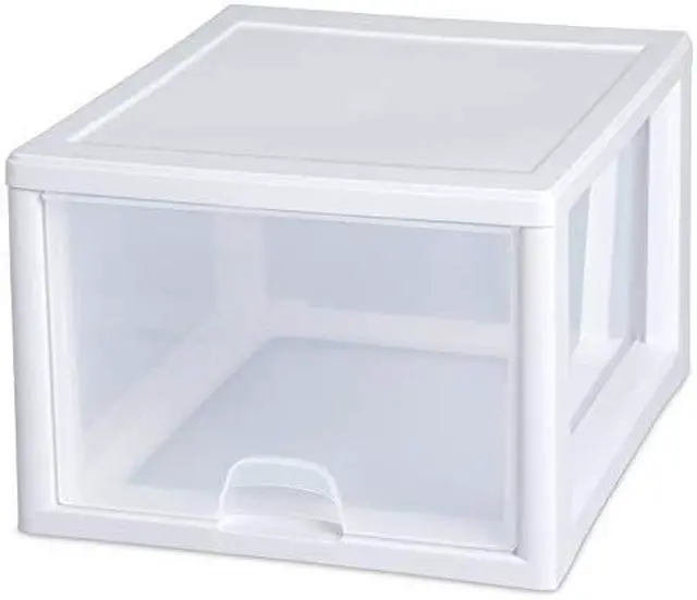Sterilite, 27 QT, Stacking Drawer, White Frame With See Through Drawer, 17"L x 14-3/8"W x 10-1/4"H.