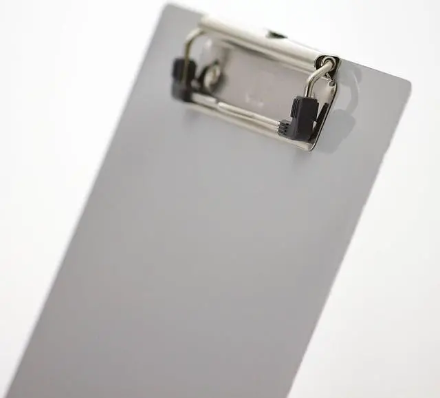 Low-profile clip securely holds letter-size paper Built-in, retractable, key hanging hole for easy storage Great for school and work site applications Solid, aluminum construction for durability