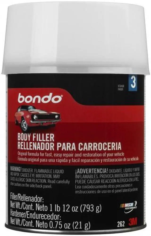 Body Filler, Product Type Body Filler, Base Type Polyester, Color Pink, Compatible Surface Material Concrete, Fiberglass, Metal, Wood, Working Time 3 min, Full Cure Time 20 min, Container Size 28 fl oz, Container Type Can, Includes Bondo Red Cream Hardener, Number of Components Two-Part System, Standards 29 CFR 1910.1200, OSHA, Flash Point 80 Degrees F. This item has been restricted from sale in the following state (s): []