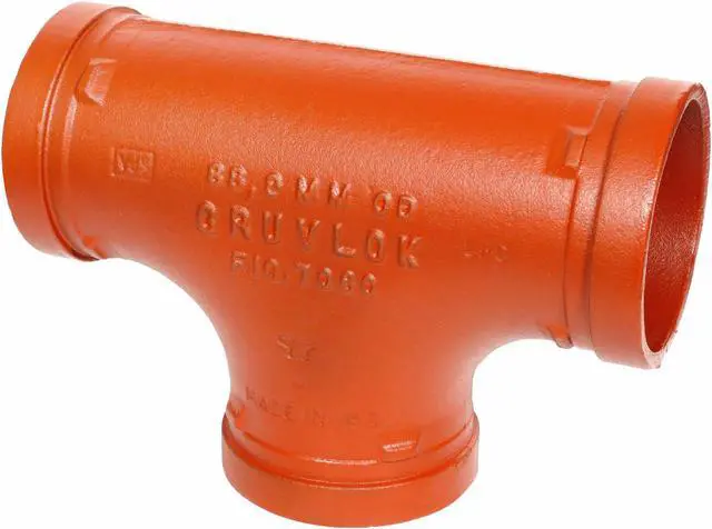 Tee, Ductile Iron, Painted, Class Class 150, For Pipe Schedule 40, 3 in, Grooved, 3 in, Grooved, 3 in, Grooved, 300 psi @ 150 Degrees F Maximum Operating Pressure