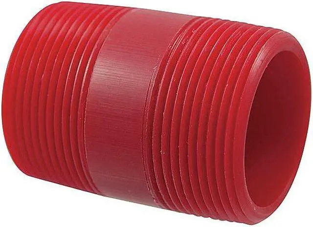 Pipe Nipple, Application Acids, Bases, Solvents, Color Red, Fitting Compatibility Schedule 80, Material Polyvinylidene, Material Trade Name Chemtrol, Maximum Operating Pressure 1, 360 psi, Maximum Operating Temperature 280 Degrees F, Minimum Operating Temperature -20 Degrees F, Nominal Pipe Size 3/4 in, Overall Length 2 in, Schedule Schedule 80, Side A Connection Type Threaded, Side A Gender Male, Side A Thread Type NPT, Side B Connection Type Threaded, Side B Gender Male, Side B Thread Type NPT. This item has been restricted from sale in the following state (s): []
